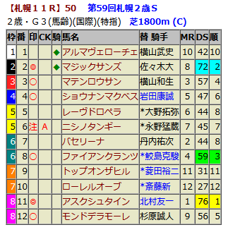 新馬戦、障害レースは反映されません。([…]と表記されます)