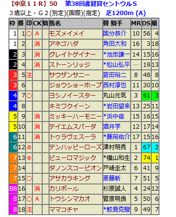 C…チェック馬(前走チェック馬リストから今走出走する馬)