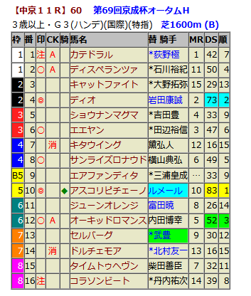 C…チェック馬(前走チェック馬リストから今走出走する馬)