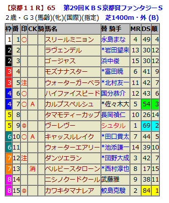 データスコア出馬表(中央競馬)