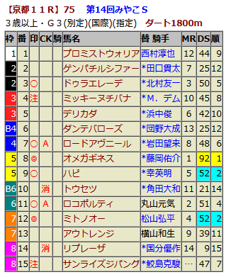【データスコア出馬表】(11/3みやこS,みちのくS)