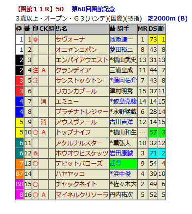 データスコア出馬表(中央競馬)